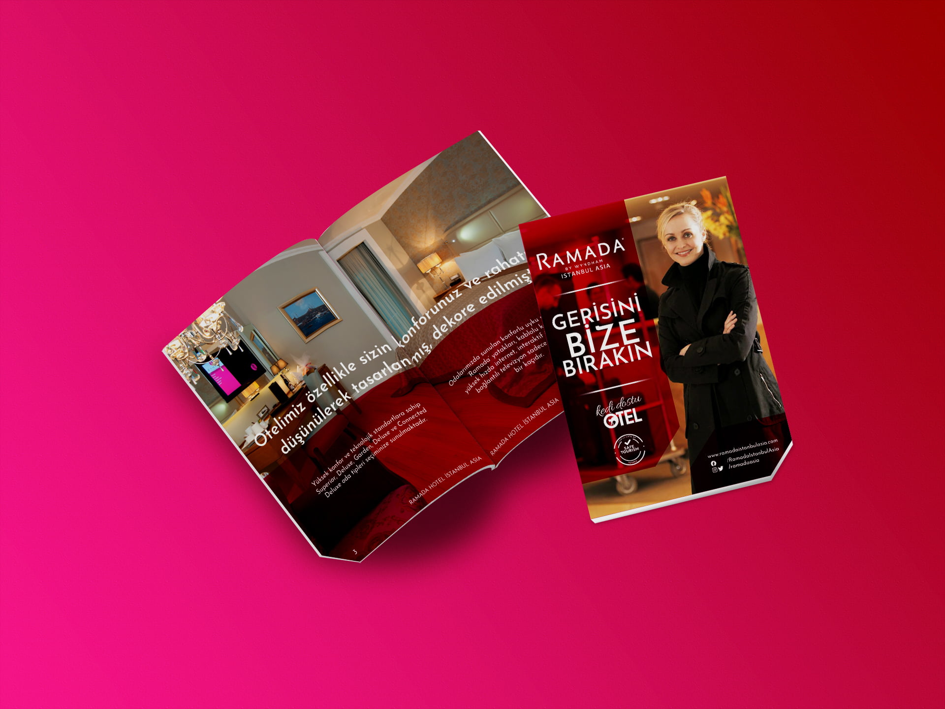 Ramada by Wyndham Istanbul Asia needed a revised corporate brochure to cater to its local and international clientele. This had to be designed as a compact, folding, bilingual marketing tool (Turkish & English) that was not only within the global brand guidelines of Ramada but also fit in with the active social media visuals of the hotel.